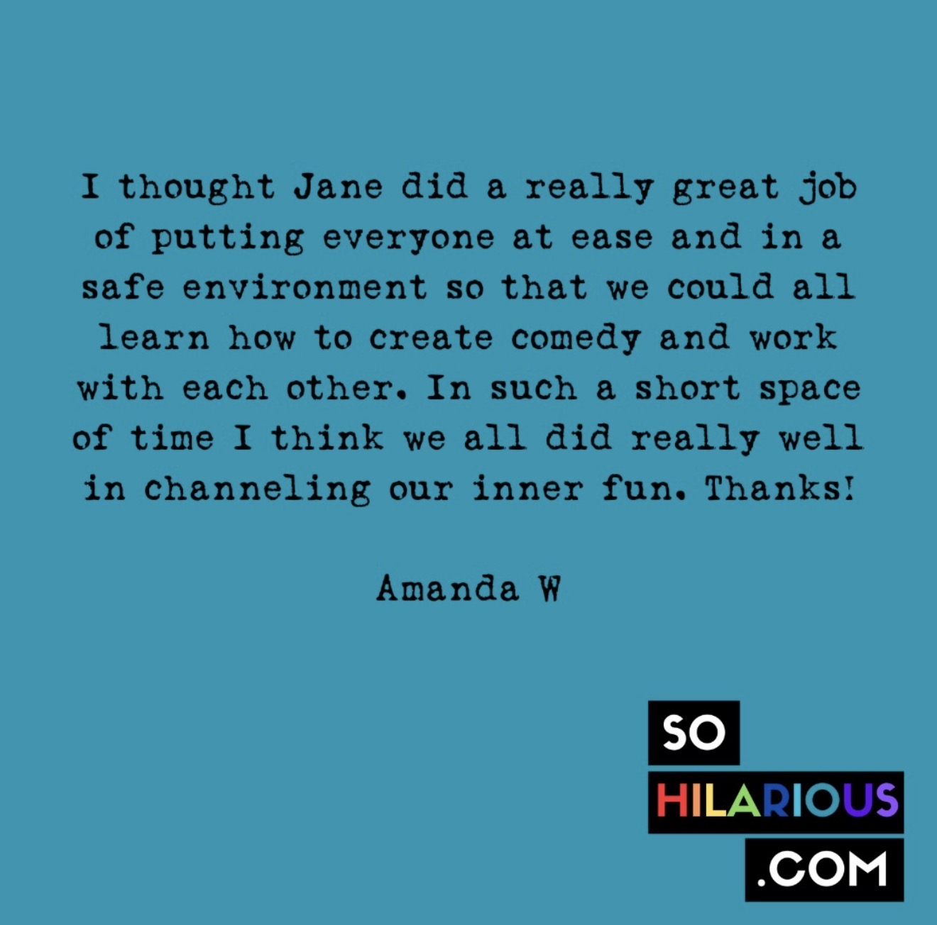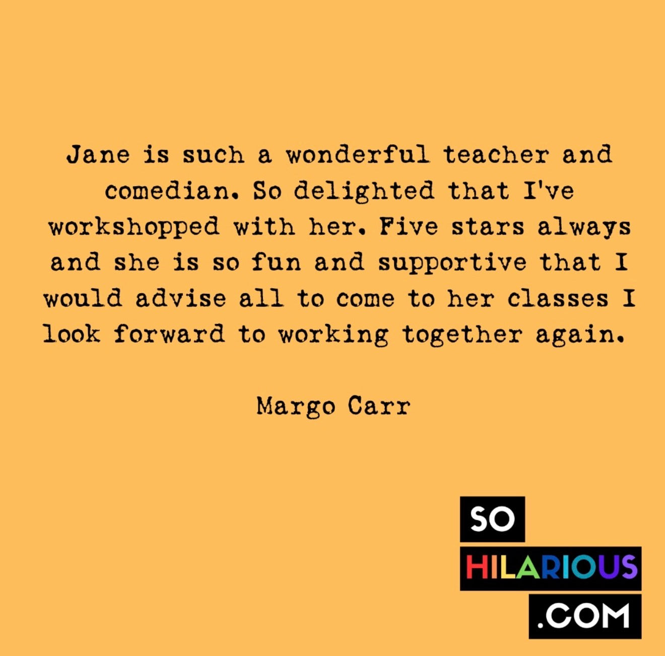 "Just finished Jane's 6 week masterclass and went from being a complete beginner with no idea, and just doing for myself, to having a concept, timeline and storyline for one show, concept for another, plus synopsis for a radio sitcom, and most importantly all the information I needed to start performing, finding venues and also advertising." - Sarah T