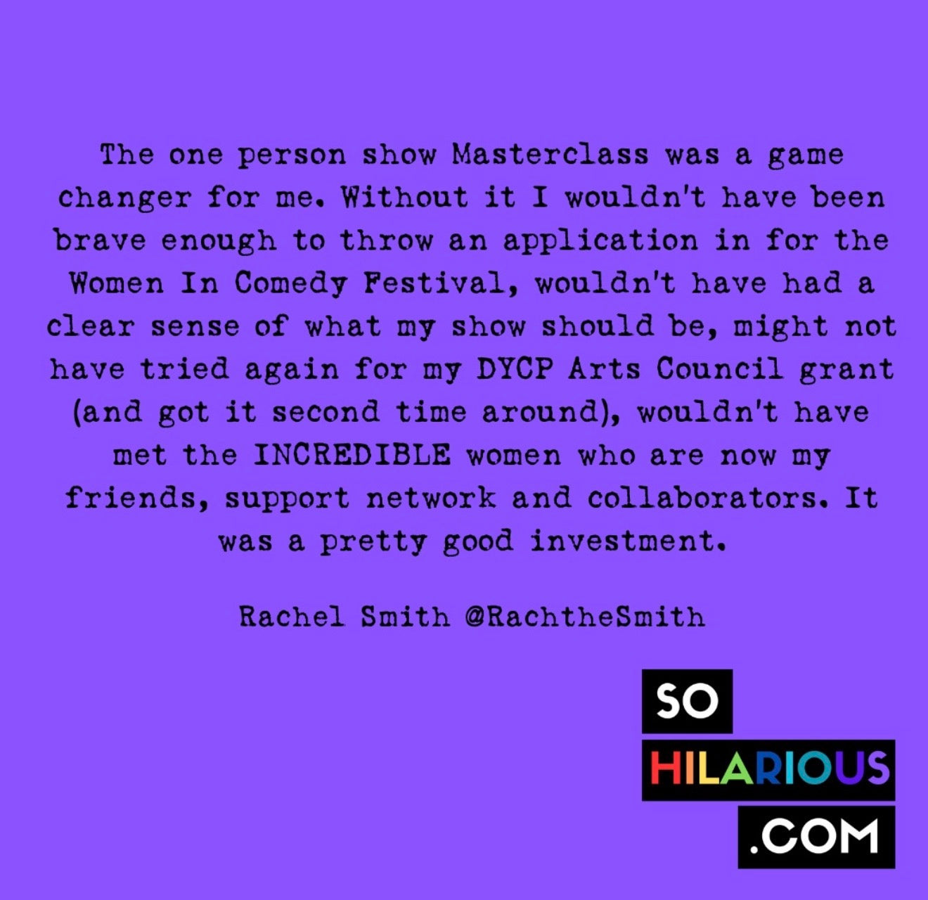 "I came to the masterclass thinking I would write a show but came out of the 6 weeks with far more. I now have an idea for a book and have more clarity on the comedy career I want to pursue." - Emma R